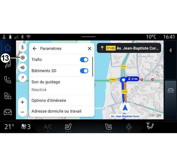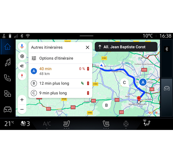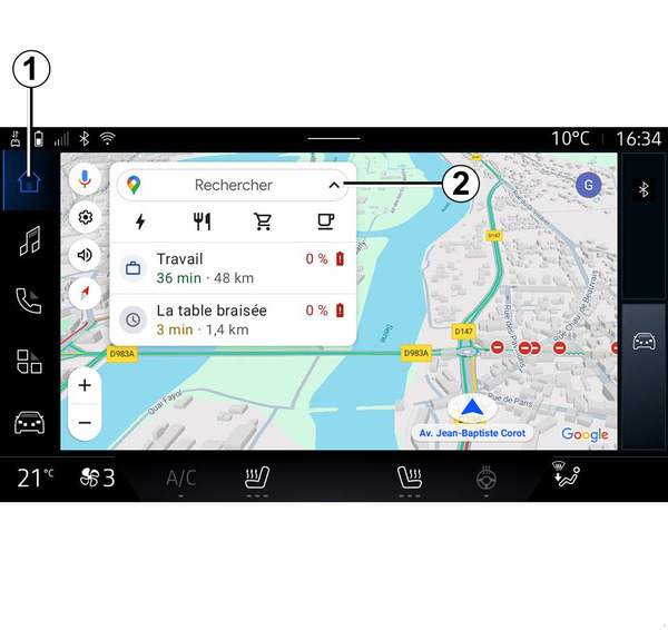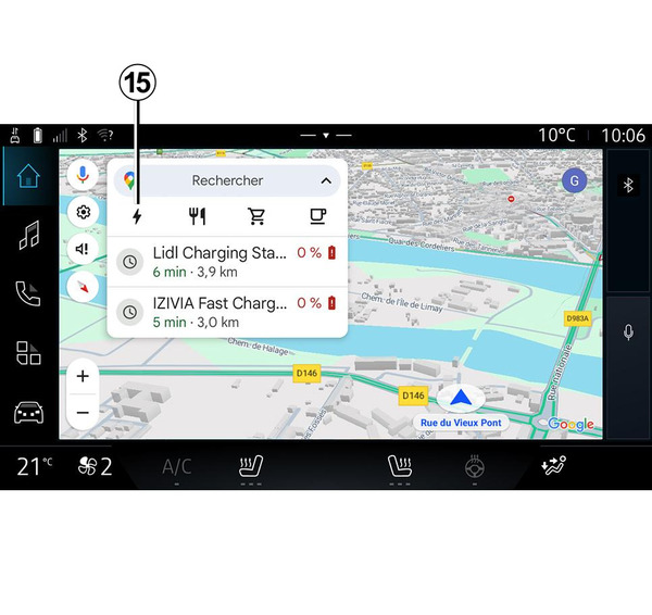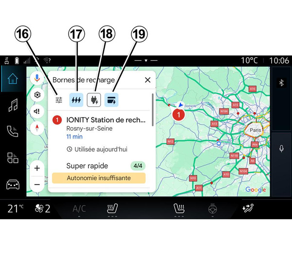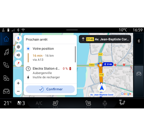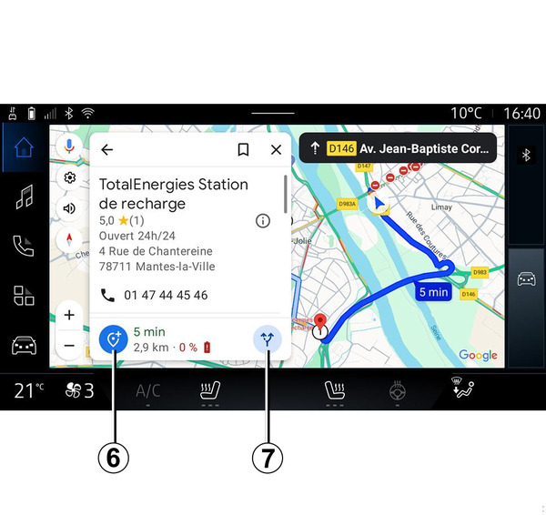 - pentru a beneficia de toate funcţiile de navigare, introduceţi informaţii despre vehiculul dvs. (de exemplu: tipul prizei de încărcare), conectându-vă la contul dvs. Google®.