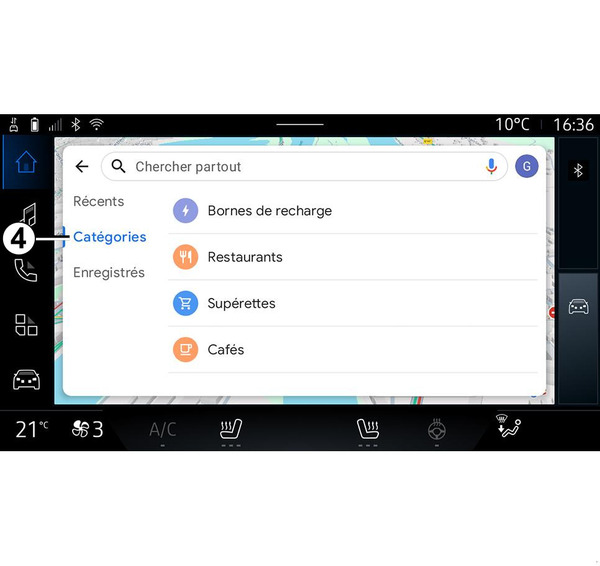 Din bara de căutare, selectaţi fila "Categorii" pentru a accesa o listă de categorii POI (punct de interes):