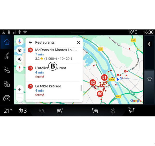 După ce aţi selectat o categorie, sistemul multimedia va oferi o listă de POI la B şi pe hartă. Puteţi să: