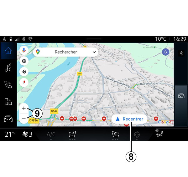 Pentru a recentra harta, apăsaţi butonul "Recentrare" 8.