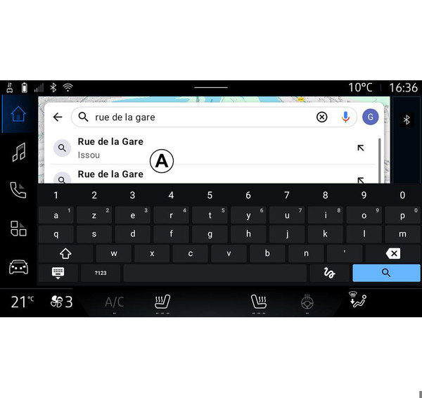 - apăsaţi pe numele străzii afişate pe ecran pentru a confirma selecţia;