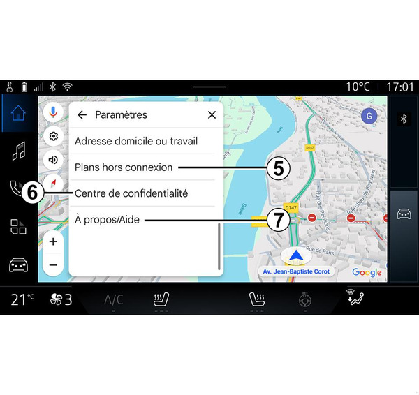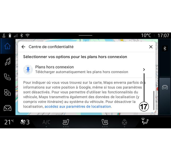 Pentru a accesa direct setările de locaţie ale vehiculului, apăsaţi "Accesaţi setările de locaţie" 17.