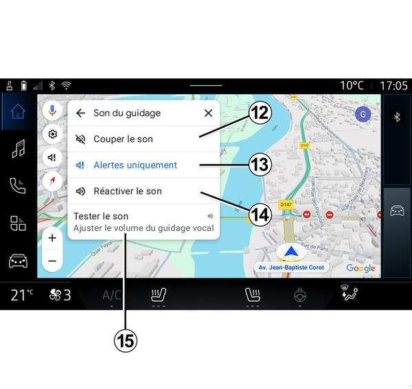 • să testaţi sunetul pentru "Navigare" pentru a regla volumul ghidării vocale 15.