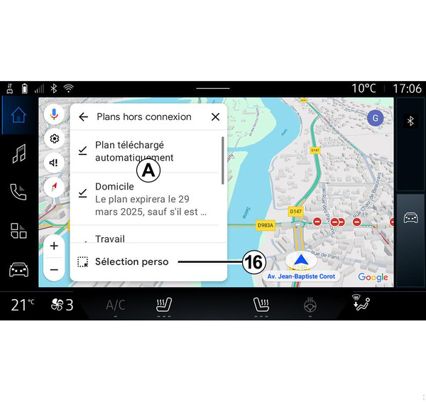 Pentru a adăuga o hartă offline la "Selecţie personalizată", apăsaţi pe 16.