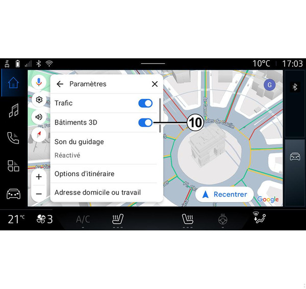 • activarea/dezactivarea funcţiei "Clădiri 3D" 10;