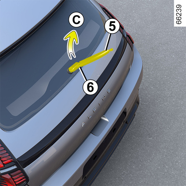 - rotiţi lamela ştergătorului lunetei 5 (mişcarea C) până când se desprinde;