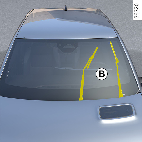 Pentru a înlocui ştergătoarele, treceţi-le mai întâi în poziţia de revizie B.