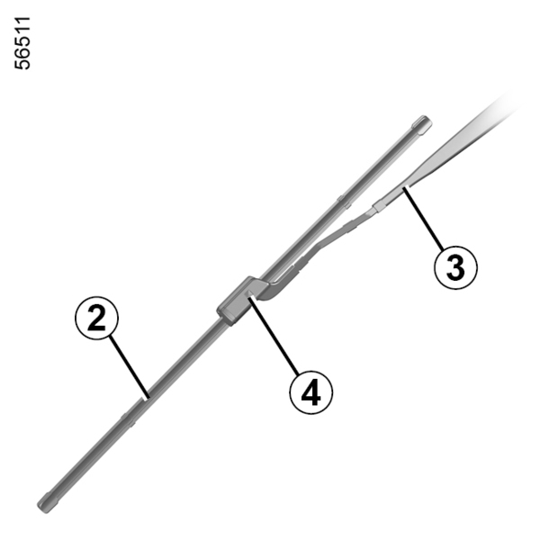 - ridicaţi braţul ştergătorului, coborâţi langheta 4, apoi scoateţi lamela în jos.