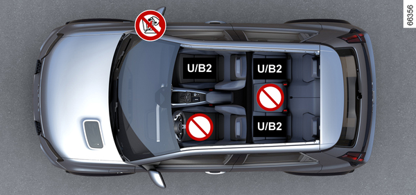 U = Seat enabling a child seat with "Universal" approval to be attached by seat belt: check that it can be fitted.