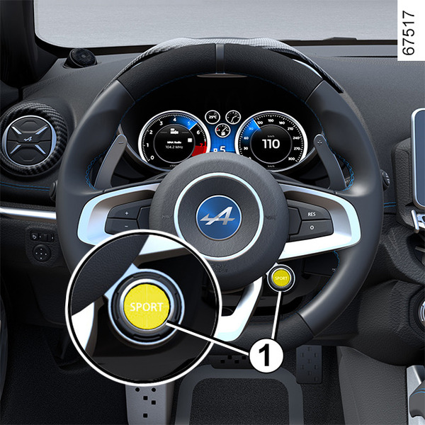 Pritisnite stikalo 1 tolikokrat, kot je potrebno, da izberete način Sport. Prikazovalnik na instrumentni plošči je spremenjen in prikaže se sporočilo "Sport".
