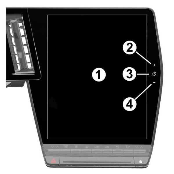 3 | Briefly press: "Minimal display", "Cleaning screen", "Stand-by". Press and hold (around five seconds): force the multimedia system to shut down. |