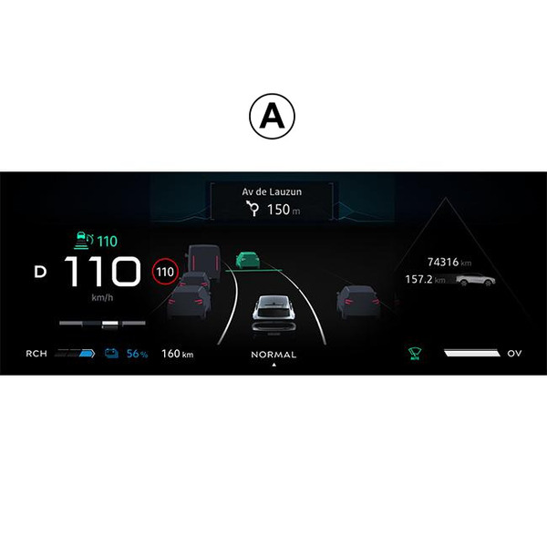 • classic view A. The information is displayed in the upper area of the instrument panel screen C;