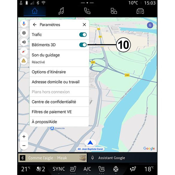 Your driving and location data can be shared with Google®. These can be used to improve the information provided to you and other users by Google®, such as navigation, traffic conditions in real-time, availability of "Offline maps", etc.