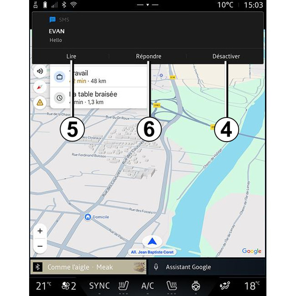 The multimedia system enables you to have the SMS read by a voice synthesiser by pressing the "Play" button 5, then respond to them.