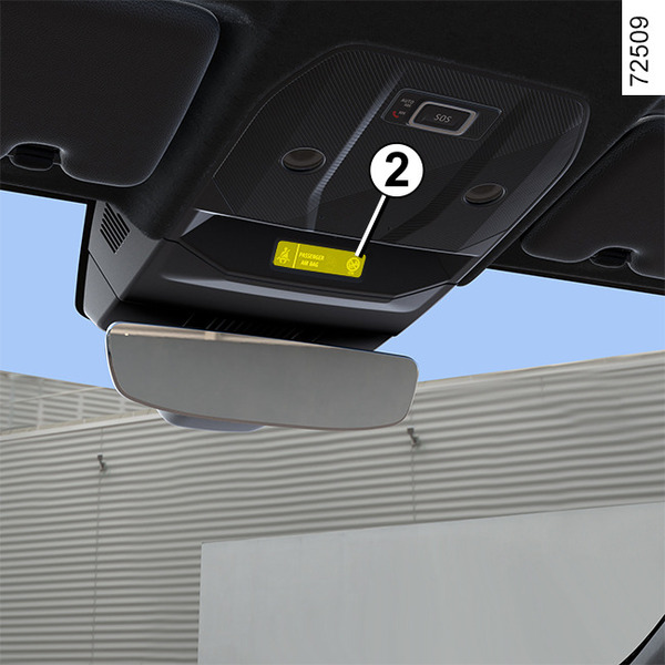 Markeringarna på instrumentpanelen och dekalerna A på vardera sidan om solskyddet 3 på passagerarsidan (se exempel på dekal ovan) är avsedda att påminna om dessa instruktioner.