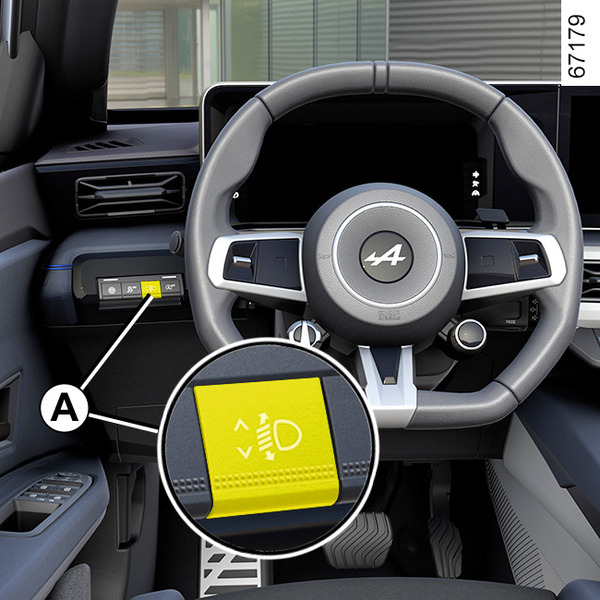 Knappen A används för inställning av strålkastarnas ljusbild i höjd beroende på lasten.