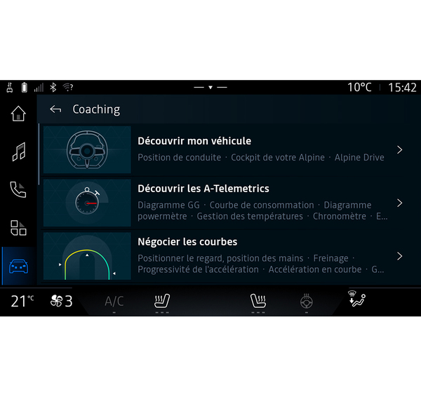 - För att dra nytta av alla funktioner måste du para ihop din smartphone med multimediasystemet via appenAlpine Telemetrics.