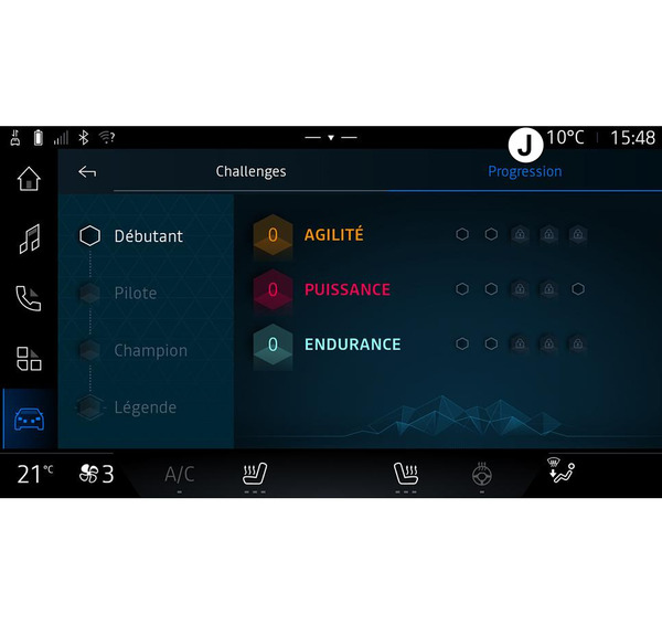 I den här menyn kan du se din status, dina framsteg i de olika utmaningarna och de medaljer du har vunnit.