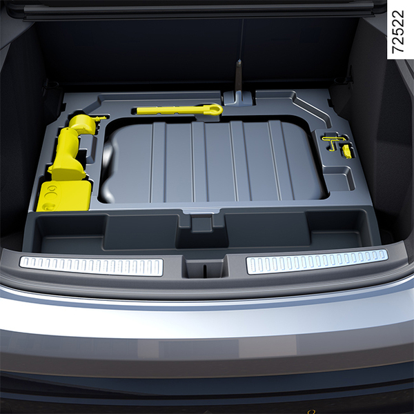 Verktygssatsen är placerad i bagagerummet under bagagerumsmattan.