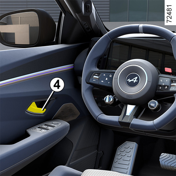 Ha dörrarna upplåsta, placera handen under dörrhandtaget 3 och dra mot dig.