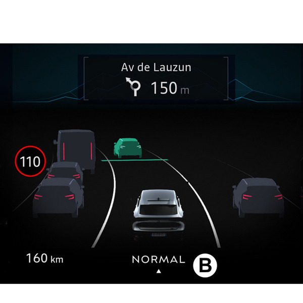 Vy B visar viktig information på instrumentpanelen, tillsammans med ditt fordon och dess omgivning (körfält, omgivande fordon som rör sig i samma riktning osv.).