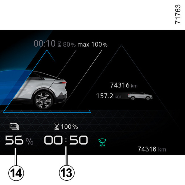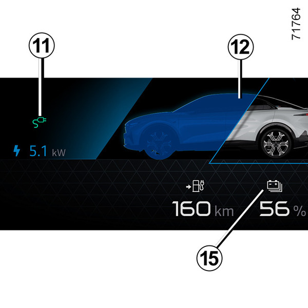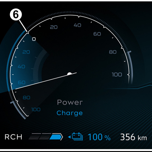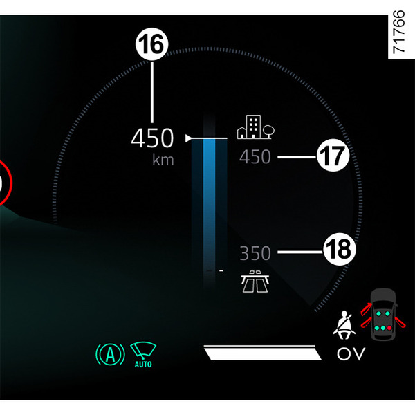 - indikatorlampa 18: "låg" beräknad räckvidd enligt ogynnsamma körförhållanden (t.ex. körning på motorväg på vintern eller i en trafikstockning vid intensiv användning av värmesystemet).