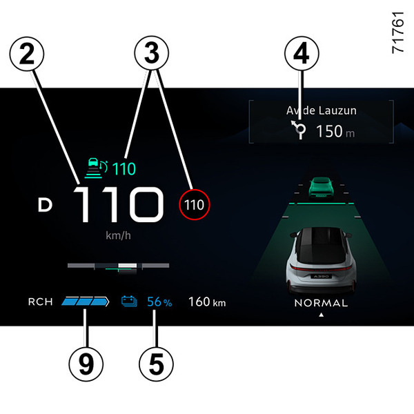 Batteriinformation 5 (drivbatteriets laddningsnivå, beräknad räckvidd).