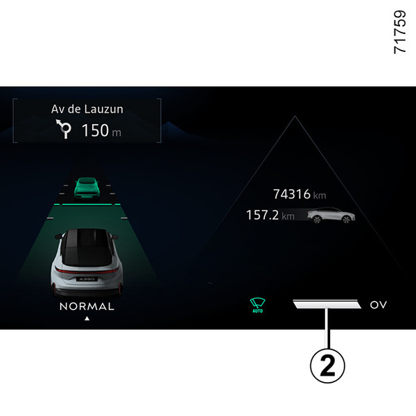 Du kan när som helst kontrollera om funktionen är tillgänglig genom att kolla det återstående intervallet på "OV"-mätaren 2 som visas på instrumentpanelen.