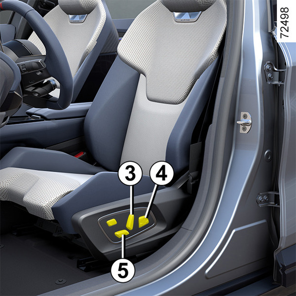 När sätet förflyttas till rätt position kan du avbryta justeringen genom att trycka på en av sätesjusteringsknapparna 3, 4 eller 5. Var försiktig under denna åtgärd.