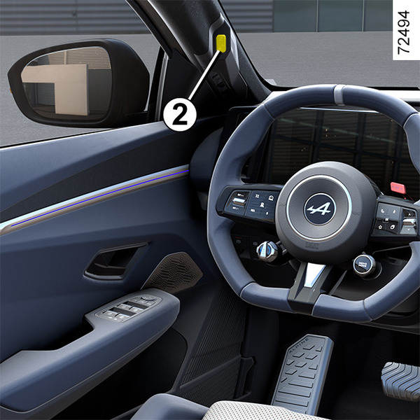 När förardörren är stängd och så snart den inre kameran 2 avkänner ditt ansikte och associerar det till ansiktsbilden som är kopplad till den användarprofil du har sparat, aktiveras de förinställda inställningarna (körställning, anslutning till din telefon, kalender osv.).