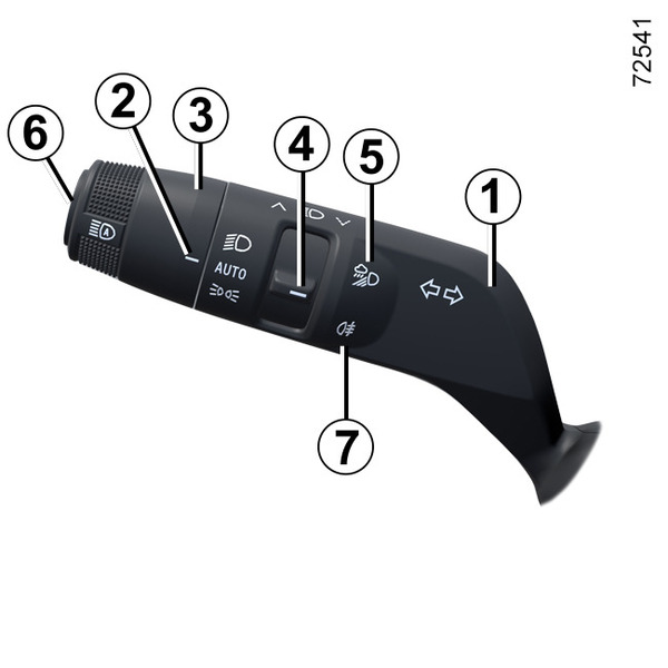 Vrid ringen 3 tills symbolen AUTO syns mitt för märkningen 2: med motorn igång tänds eller släcks halvljusen automatiskt beroende på de yttre ljusförhållandena, utan att du rör reglaget 1.