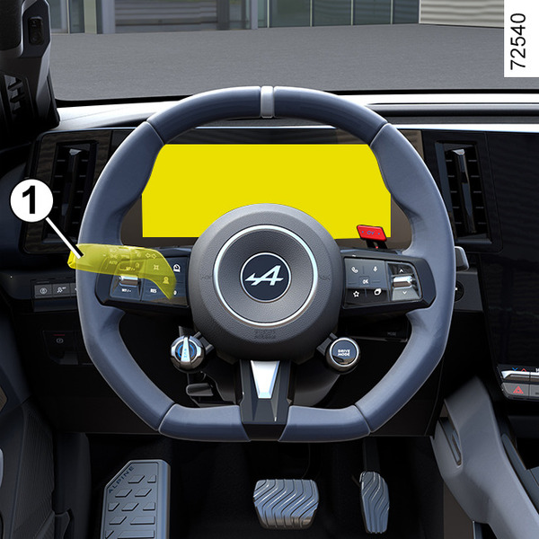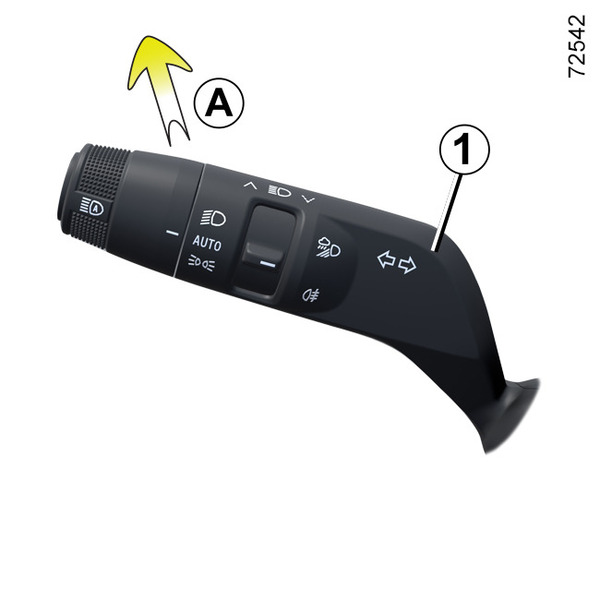 Tänd halvljusen och tryck på spaken 1 (rörelse A) med motorn igång.