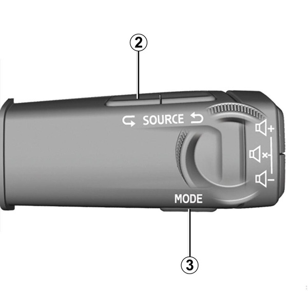 - "Mode" düğmesi üzerinde 3 ve direksiyon kolonu kumandasındaki sol "Source" düğmesinde 2.