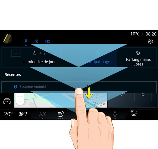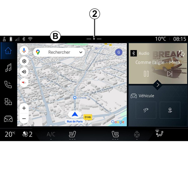 2 düğmesine basarak veya B alanından ekranın ortasına doğru multimedya ekranı hızla kaydırarak erişilebilir. Bildirim merkezi, bildirim geçmişine erişim sağlar, örneğin: