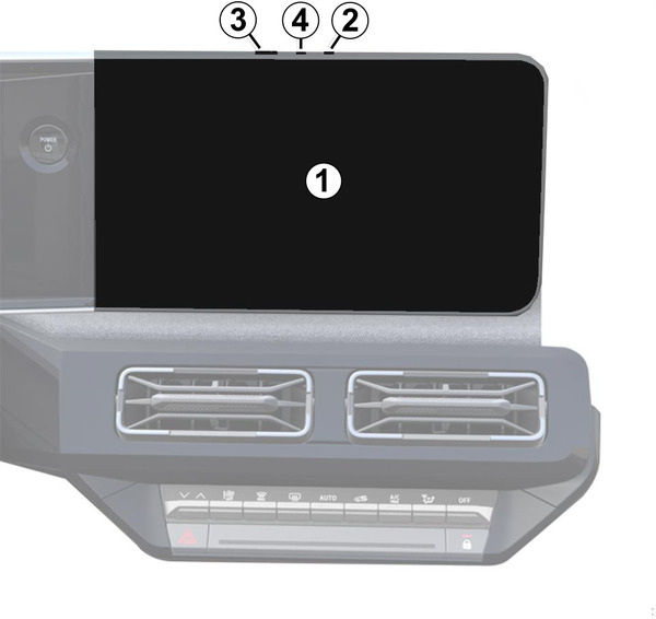 3 | Kısaca basınız: "Radyo - Müzik KAPALI"/"Radyo - Müzik AÇIK", "Ekran bekleme modu", "Ekran Temizleme ", "Hazır". Basılı tutma (yaklaşık beş saniye): multimedya sisteminin zorla kapatılması. |