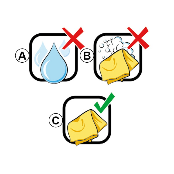 : Hafif nemli bir mikro fiber bez kullanarak sabunlu suyla temizlemeyiniz;