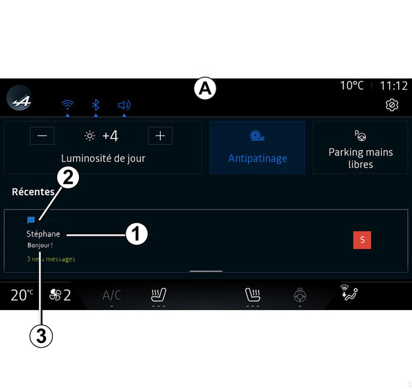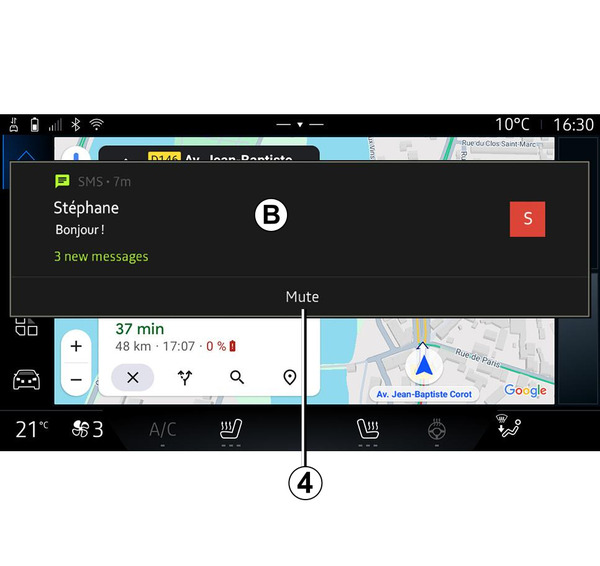 Multimedya sistemi yeni bir SMS alındığını, açık olan herhangi bir menüde B konumunda gösterilen bir uyarı mesajı ile size bildirir.